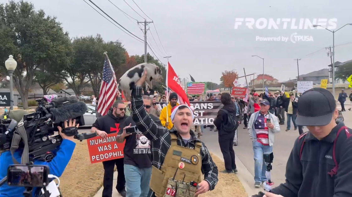 Americans and Christian demonstrators gathered peacefully in Plano, Texas, near a local mosque, where they held a public march protesting Islam and raising concerns about immigration, culture, and national identity. Video footage shared online shows the group marching without reported violence or physical confrontations, while law enforcement monitored the situation to maintain order.