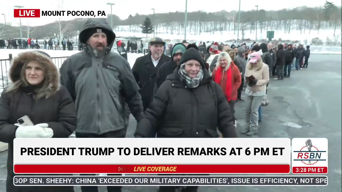 Thousands of supporters gathered in Pennsylvania on Friday ahead of President Donald Trump’s scheduled rally, forming long lines that continued to grow throughout the day despite freezing weather conditions.