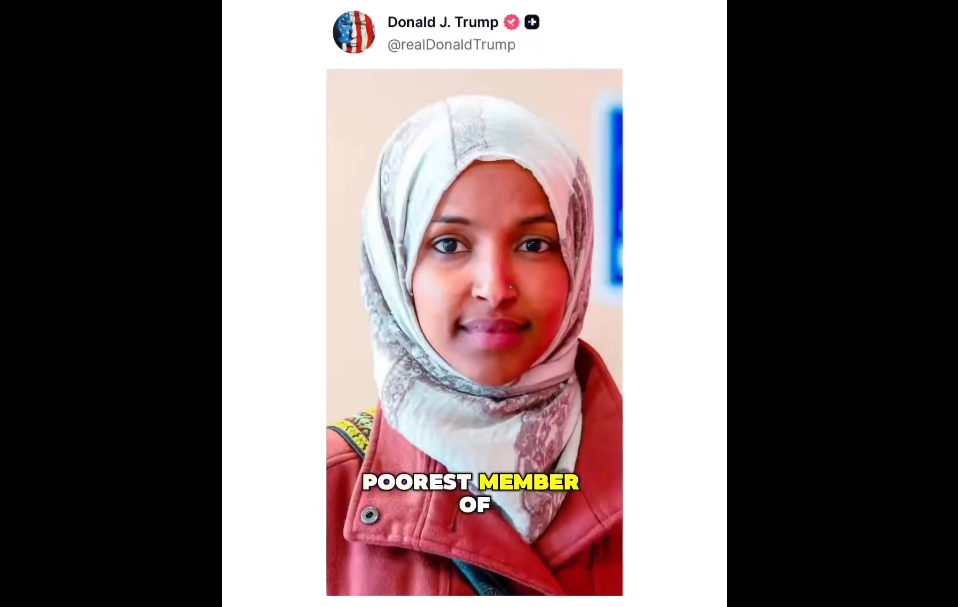 In his video post, that highlighted figures circulating online that allege Omar’s net worth shifted from negative territory to tens of millions of dollars over a relatively short period of time. Trump did not release financial documents himself, but said the discrepancy warrants serious scrutiny and transparency, particularly given Omar’s position and influence in Congress.
